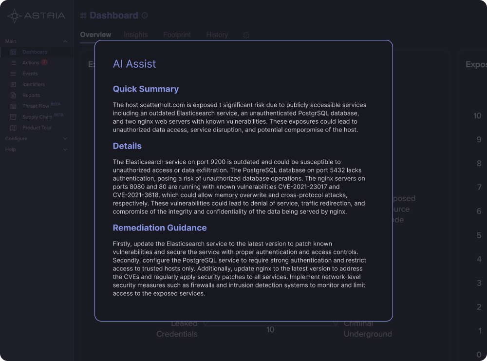 Just as Orpheus ventured into the depths of the Underworld to reclaim what was most precious to him, Astria Orpheus™ fearlessly explores the dark web to retrieve critical intelligence that protects what is most valuable to you—your data, your reputation, and your customers.