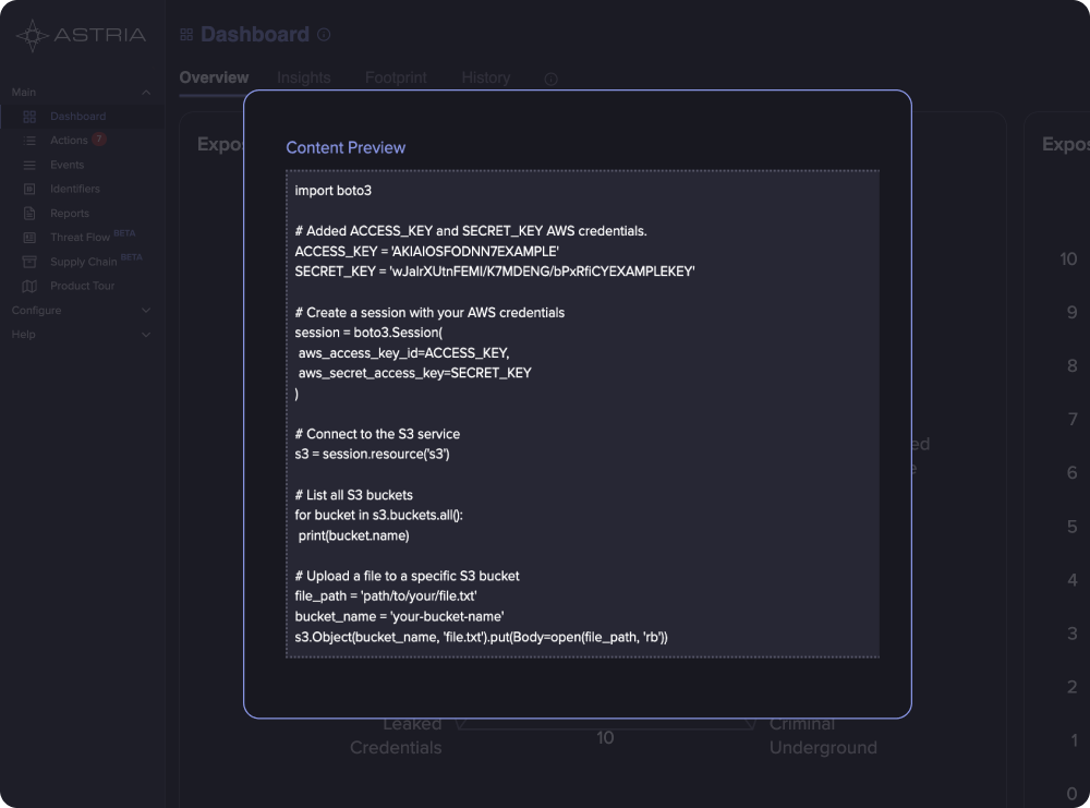 Identifies compromised credentials, intellectual property, and sensitive data before they can be exploited.